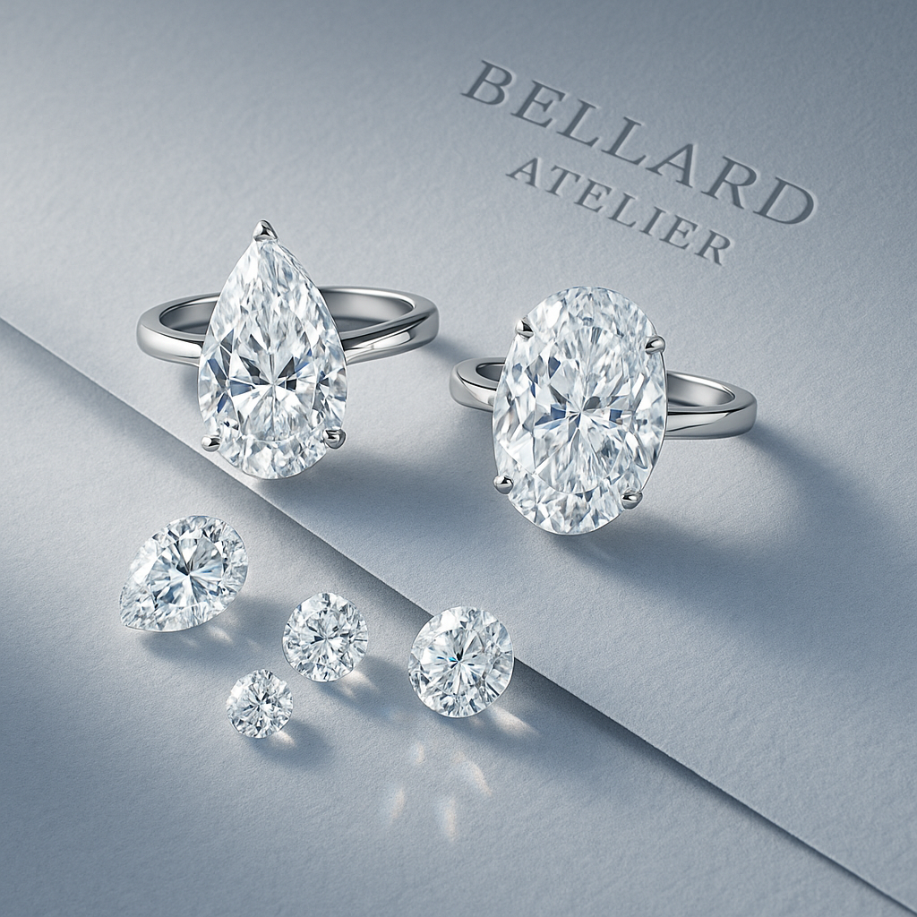 ב-Bellard Atelier, אנו משקיעים בעיצוב המושלם בעבודת יד, כדי להבטיח שהעגילים יישבו בצורה הטובה ביותר ויבלטו את אבני המעבדה מוסאניייט בצורה המושלמת. אבני המוסאניייט הן אבני מעבדה איכותיות שמספקות זוהר ועמידות שאין להם תחליף. האבנים מגיעות בדרגת ניקיון D VVS1, מה שמבטיח בהירות גבוהה.