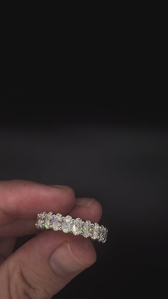טבעת איטרניטי מרהיבה עם שיבוץ מלא של אבני מואסנייט בצורת אובלים (Oval Cut) – כל אבן בגודל 0.30 קראט, למראה עשיר, נוצץ ויוקרתי.