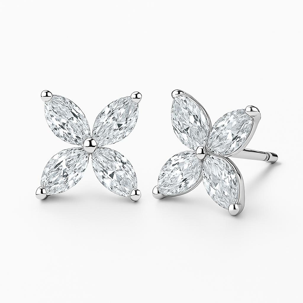 עגילי ויקטוריה – עיצוב יוקרתי עם 4 אבני מרקיז בכל צד, 2.4 קראט