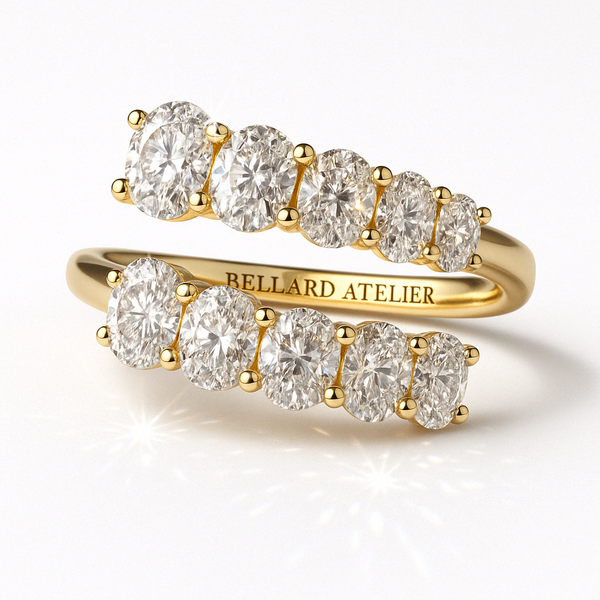 טבעת 2 שורות שלוש קאראט אובלים מדורגת
