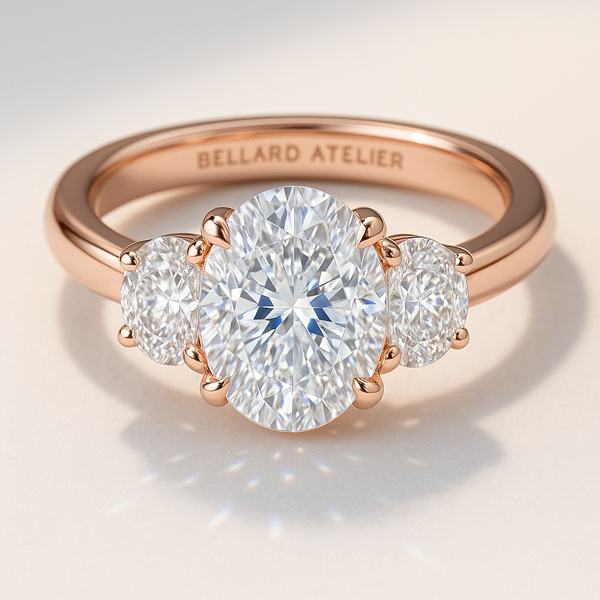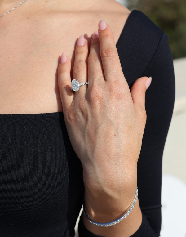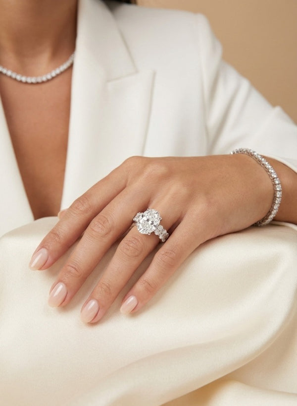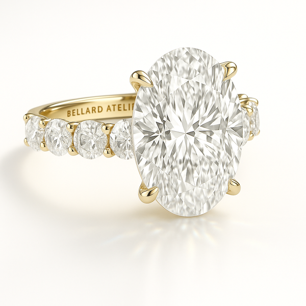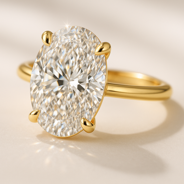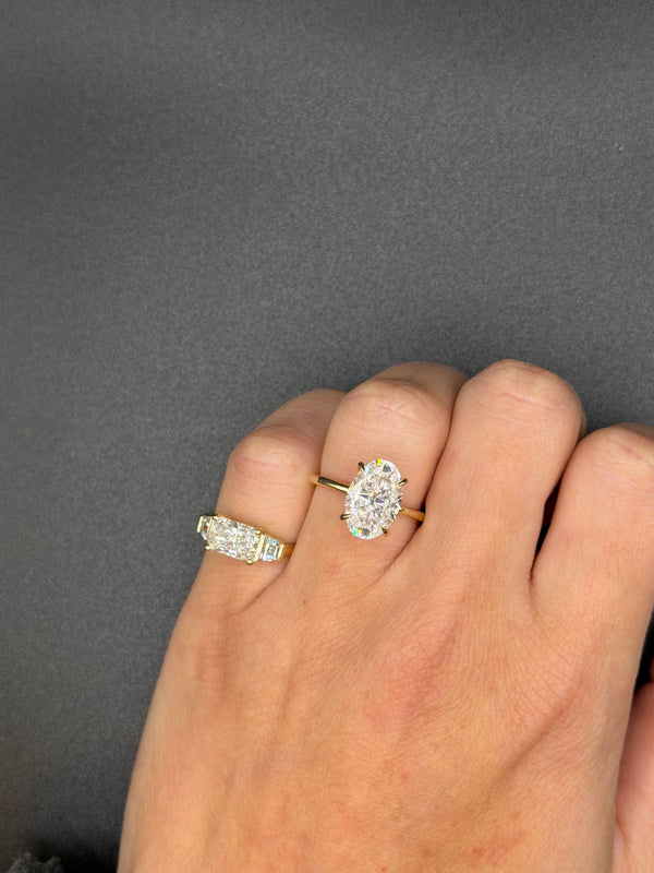 טבעת אובל 5 קאראט עם חצאי ירח משובצים בצדדים
