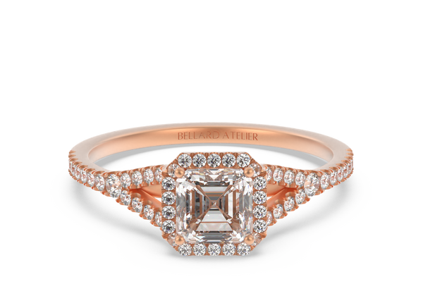 טבעת 2 שורות עם הילה ושיבוץ 3/4 – טבעת אירוסין מואסנייט D VVS1