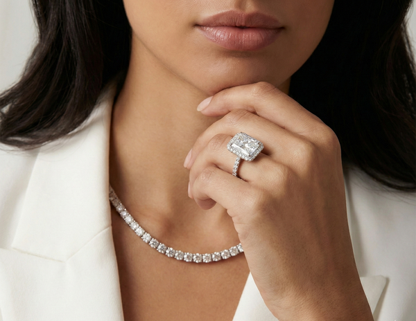 חזותית — אבן מויסנייט באיכות D-F חסרת צבע, ניקיון VVS1, נראית זהה ליהלום טבעי באיכות הגבוהה ביותר. ההבדל לעין הוא רק הברק שלה — חזק יותר.