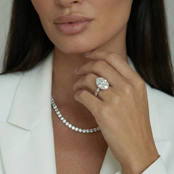 חזותית — אבן מויסנייט באיכות D-F חסרת צבע, ניקיון VVS1, נראית זהה ליהלום טבעי באיכות הגבוהה ביותר. ההבדל לעין הוא רק הברק שלה — חזק יותר.
